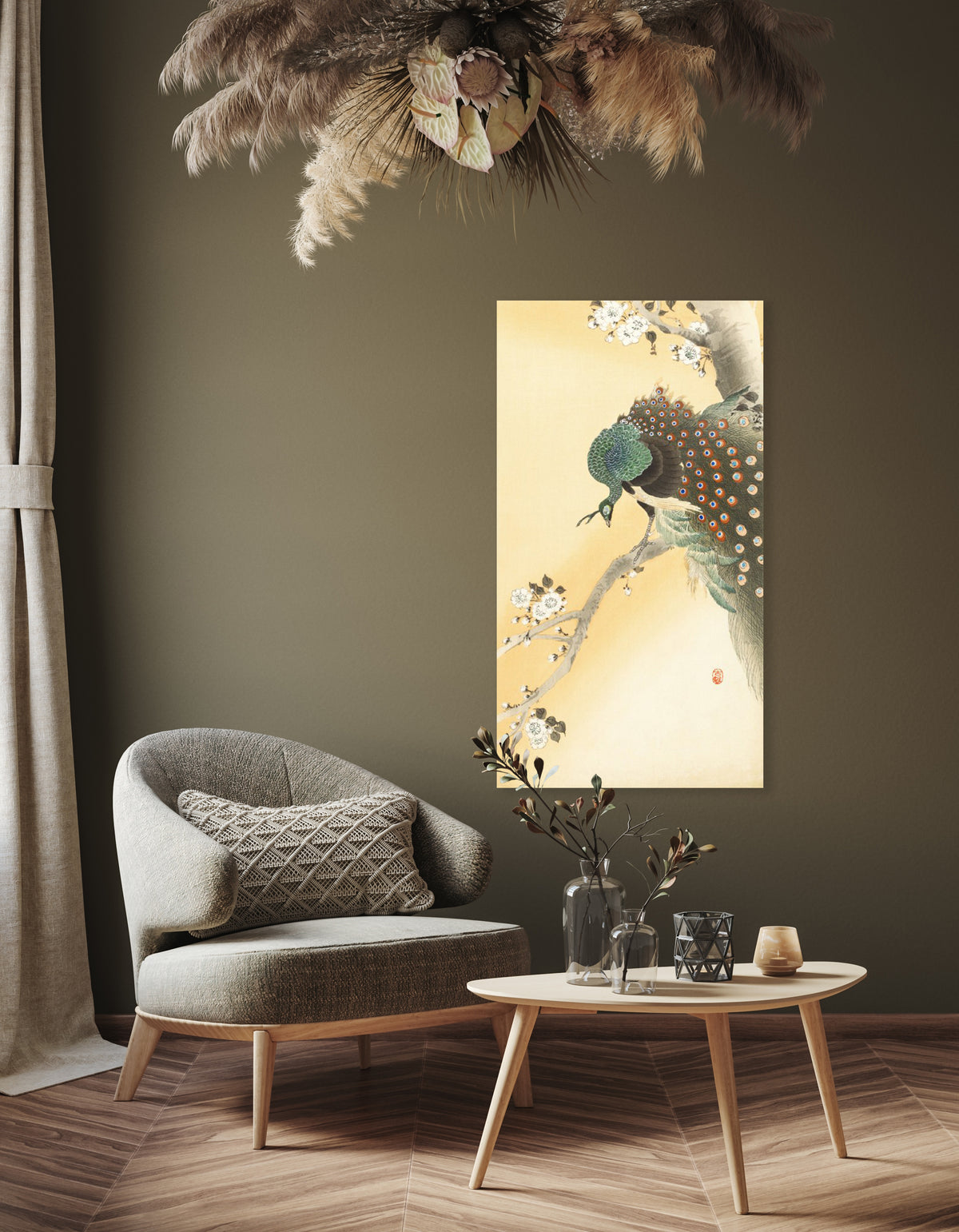 Pauw op een kersenbloesemtak - Ohara Koson - 50 x 90