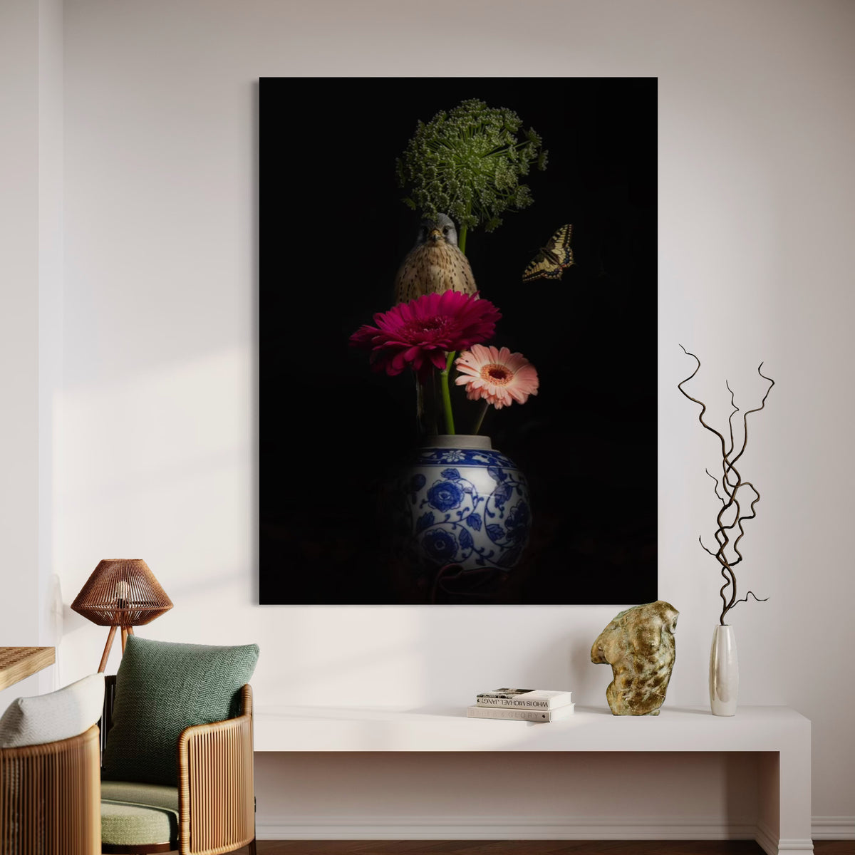 Twijfel je over een werk of de grote hiervan? Ook hier hebben wij de oplossing voor. Stuur ons een WhatsApp berichtje met een goede foto van de plek die je in gedachten had en vermeld welk werk / formaat je in gedachten had en wij sturen je een prachtig, gratis, digitaal voorbeeld. Zo zie je in een handomdraai hoe je werk straks staat.