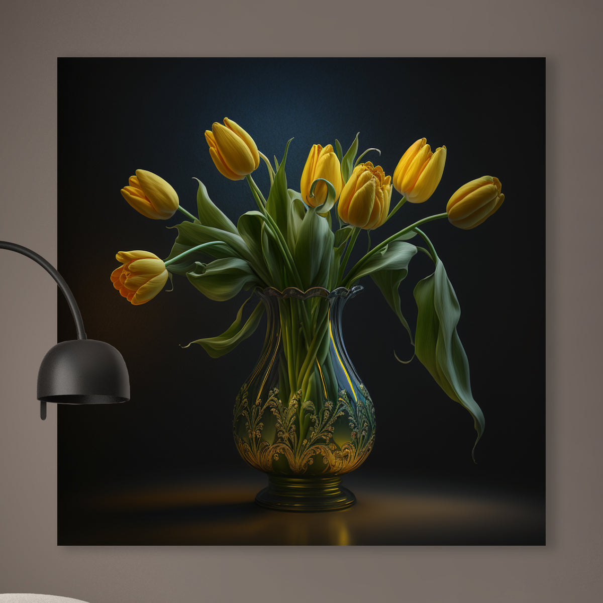 Vaas met gele tulpen - René Ladenius Digital Art - 50 x 50