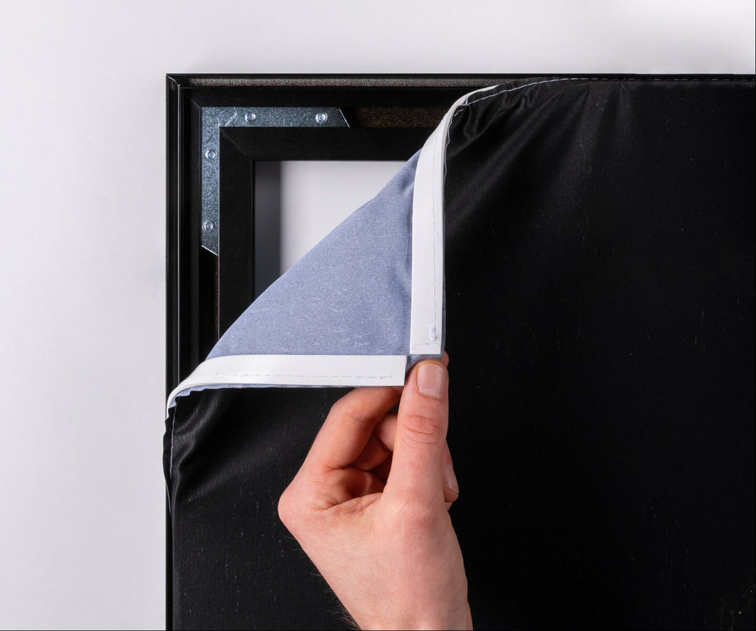 Een premium aluminium lijst met verwisselbaar doek. Binnen no-time een eye-catcher aan de muur — en uitgekeken? Wissel het doek zo makkelijk als de seizoenen.